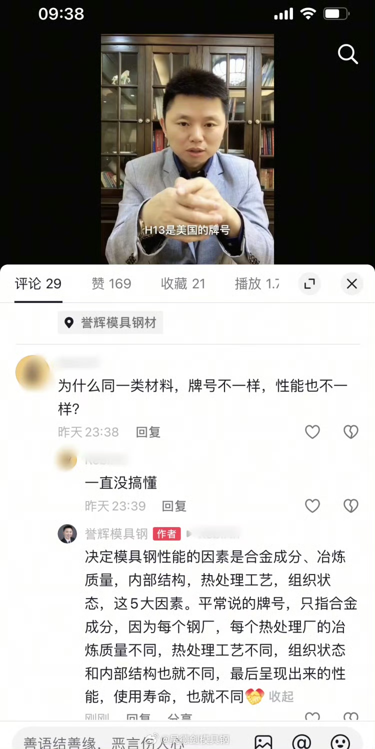 網(wǎng)友視頻下面留言問:為什么同一類材料,牌號不一樣,性能也不一樣?一直沒搞懂。